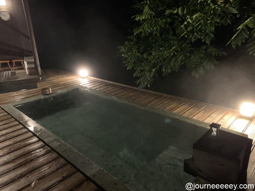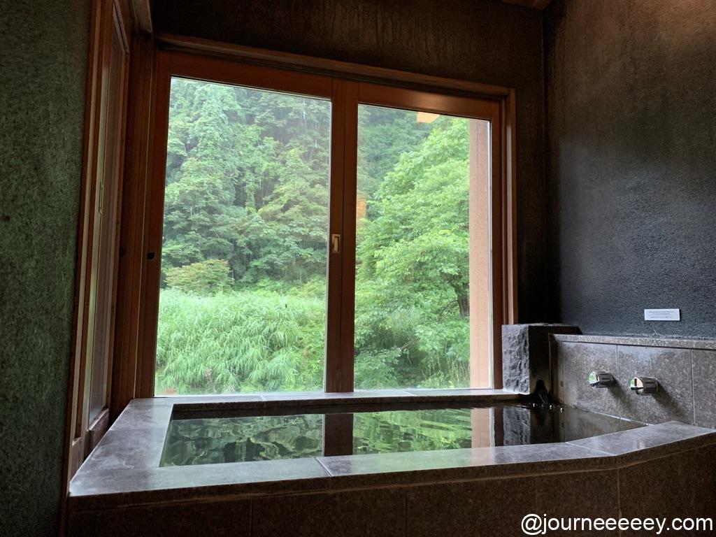 温泉は部屋についているものと時間制の貸切風呂の2つがたのしめました。自然を間近に感じる温泉です。