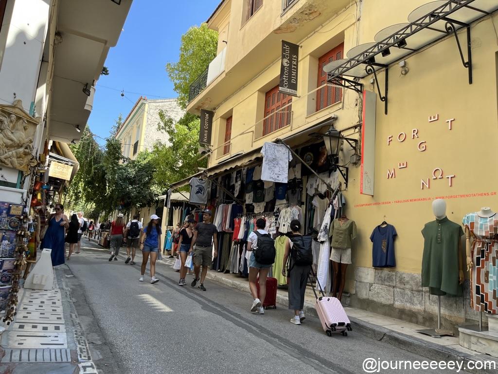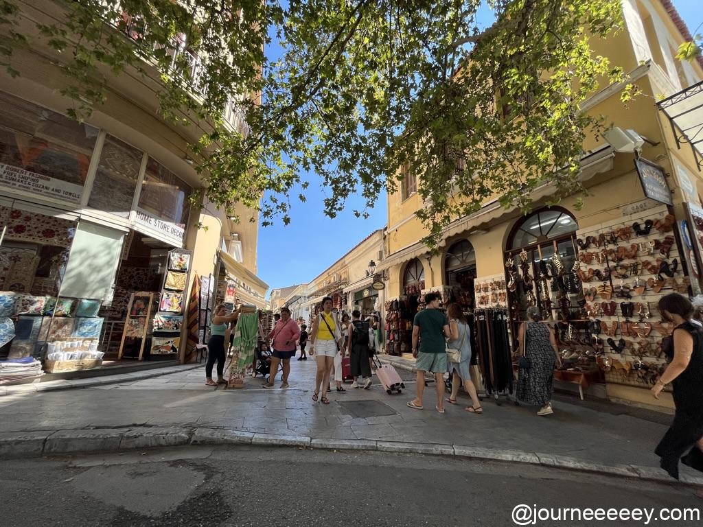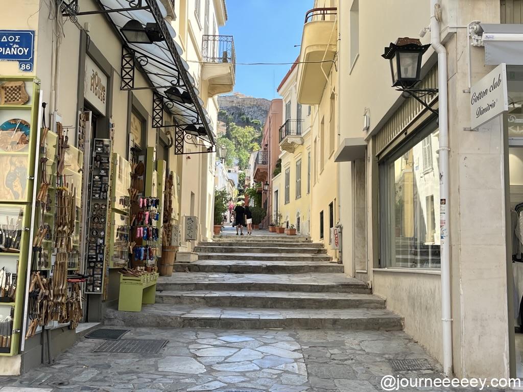 アクロポリスを降りると、かわいい石畳のまちプラカ地区にたどり着きます。白壁の路地にオリーブ石鹸や陶器の小物がならぶおみやげ屋さんなどかわいくてたまらない。