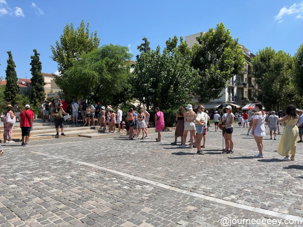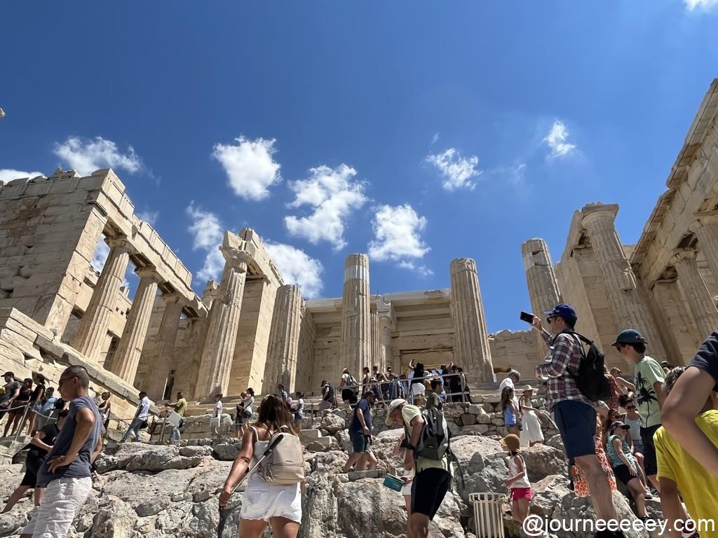 アクロポリス入口に着くと、すでに多くの観光客が!チケット買って中に入るのに40分くらい並びました。