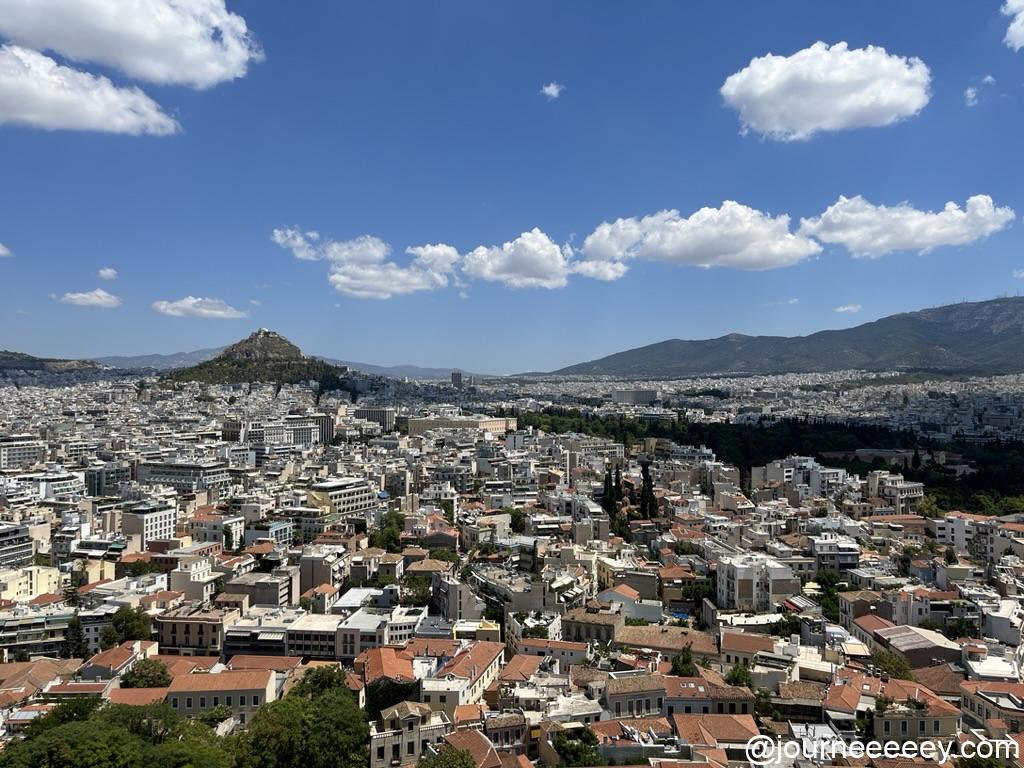 風がここちよくて、丘の上から見下ろすアテネのまち並みは絶景。