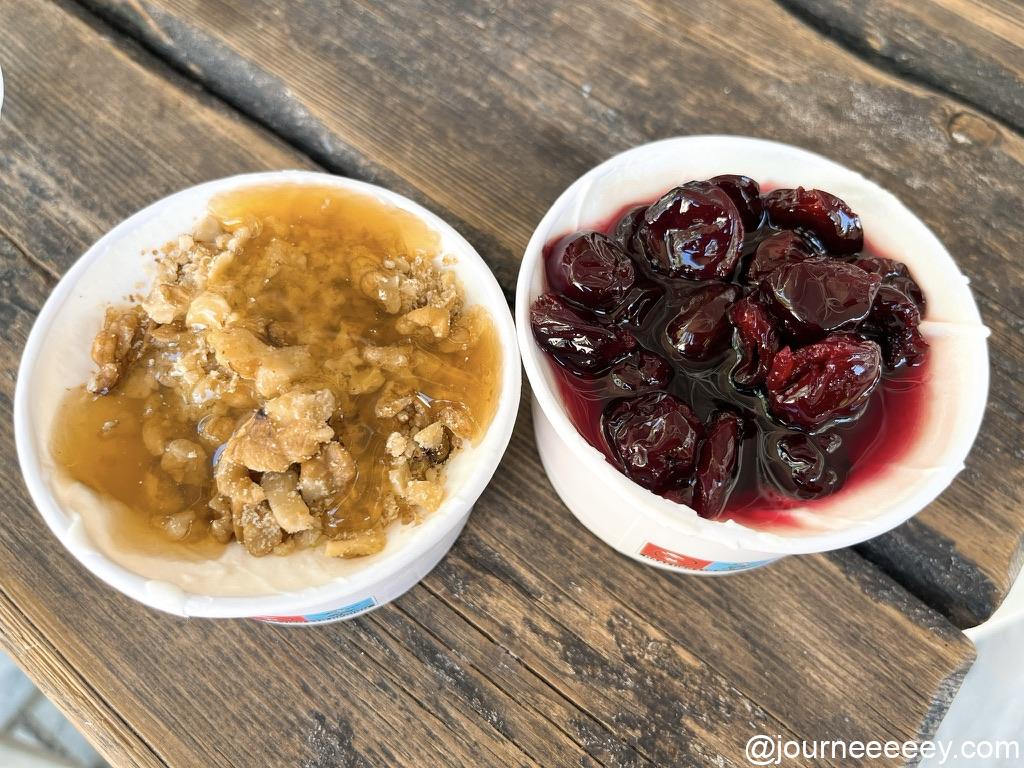 ギリシャヨーグルトが人気のFresko Yogurt Barというお店にてきのうサントリー島に行ってからどハマリ中のギリシャヨーグルト!しかも味を選びきれず2つも注文。おいしすぎるので日本にも上陸してほしい。