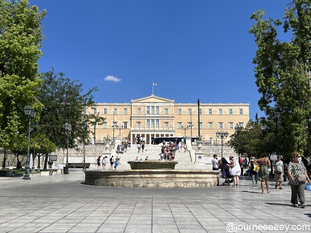 アテネの中心部、シンタグマ広場から観光スタート。アテネ空港の近くにホテルを取っていたので、シンタグマ駅まで電車にて来ました。
