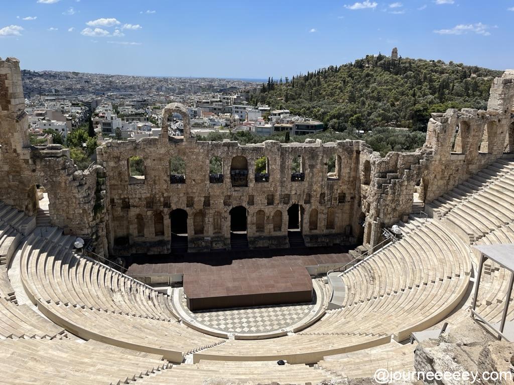 中に入るとさまざまな遺跡があります。最初に出会った特徴的的な遺跡がこちら、ヘロディス・アッティコス音楽堂。