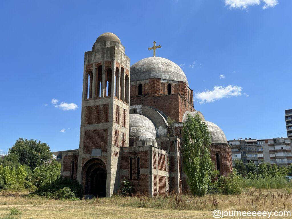コソボ戦争により未完成のまま残されたセルビア正教会。放置され廃墟となっています。内部には入れませんが、なんだかここだけ時が止まっているかのようで、歴史を感じさせられる場所でした。