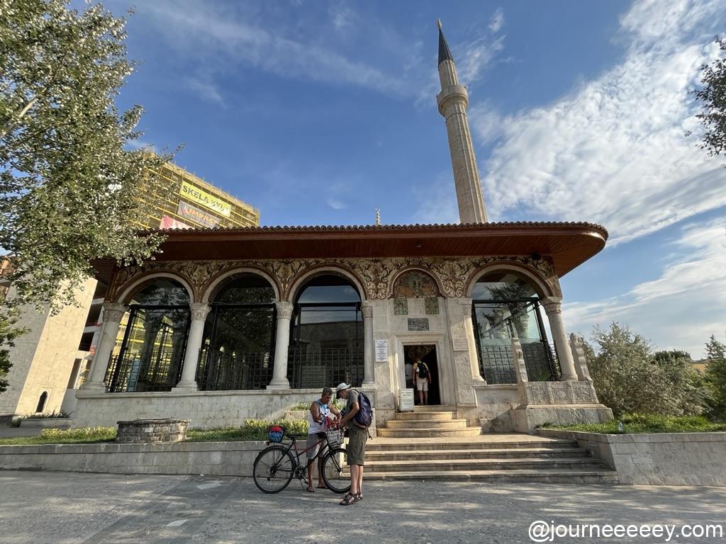 外観はシンプルながら、内部の壁画や天井の装飾が繊細でうつくしいです。アルバニアの共産主義時代には宗教活動が禁止されていましたが、このモスクは破壊をまぬがれたそうです。