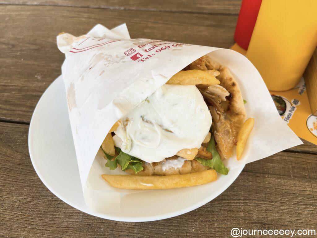 近くのお店でよくわからないまま注文し、よく分からないものが出てきましたが、かなり高カロリーで、たった220レク(350円くらい)で満腹になりました。
