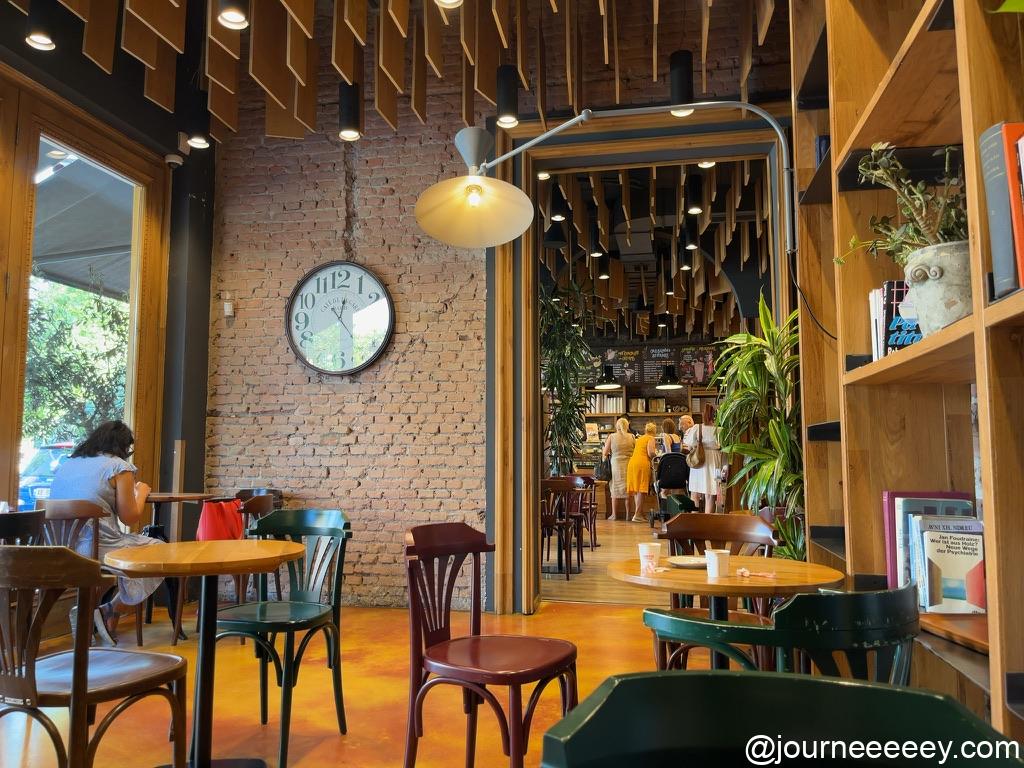 Mulliri i Vjetërで朝ごはん。店内はオシャレで店員さんもとてもやさしく気さくに話しかけてくれました。お姉さんおすすめのパンとコーヒーでいい朝のはじまりでした。