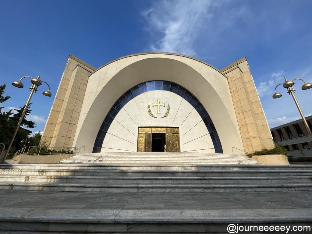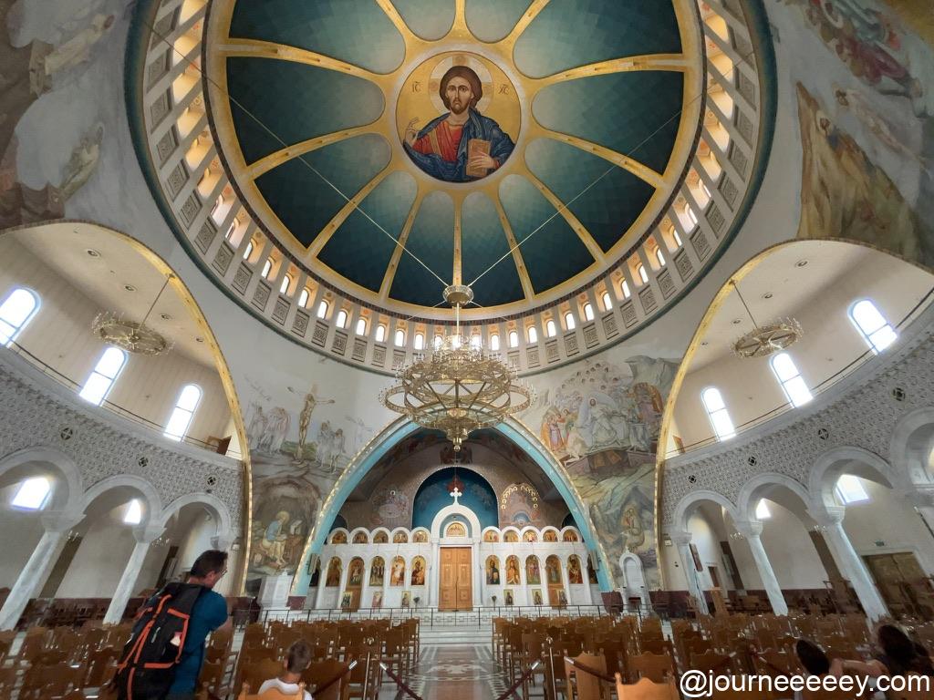 キリスト復活教会にも足を運びました。近代的なデザインの正教会で、中に入ると大きなフレスコ画が目の前に広がります。
