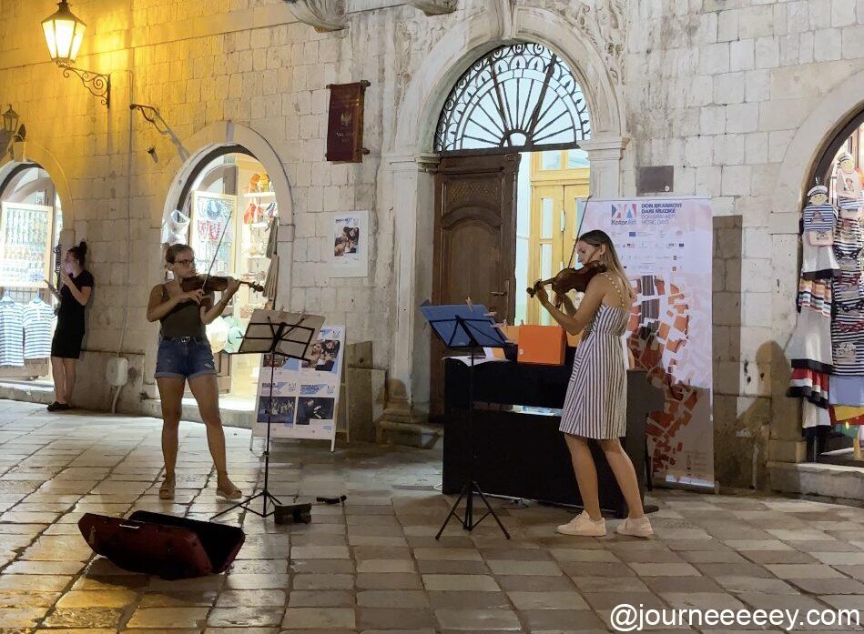夕方〜夜になるとオレンジ色のライトが中世の街なみを照らすなか、いたるところでストリートパフォーマーの演奏が響きわたります。とってもすてきな雰囲気で、パフォーマーへのチップもちゃりんちゃりん入っていました。なんかいい感じに建物に音が反響しているんですよね。あれは財布の紐がかたい私でも思わずチップを入れたくなるくらいいい演奏でした。