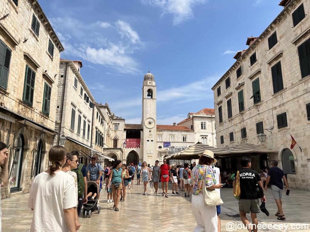 有名なプラツァ通り(Stradun)へ。おしゃれなカフェやジェラート店、おみやげ屋さんがずらり。観光客も多くてにぎやかです。
