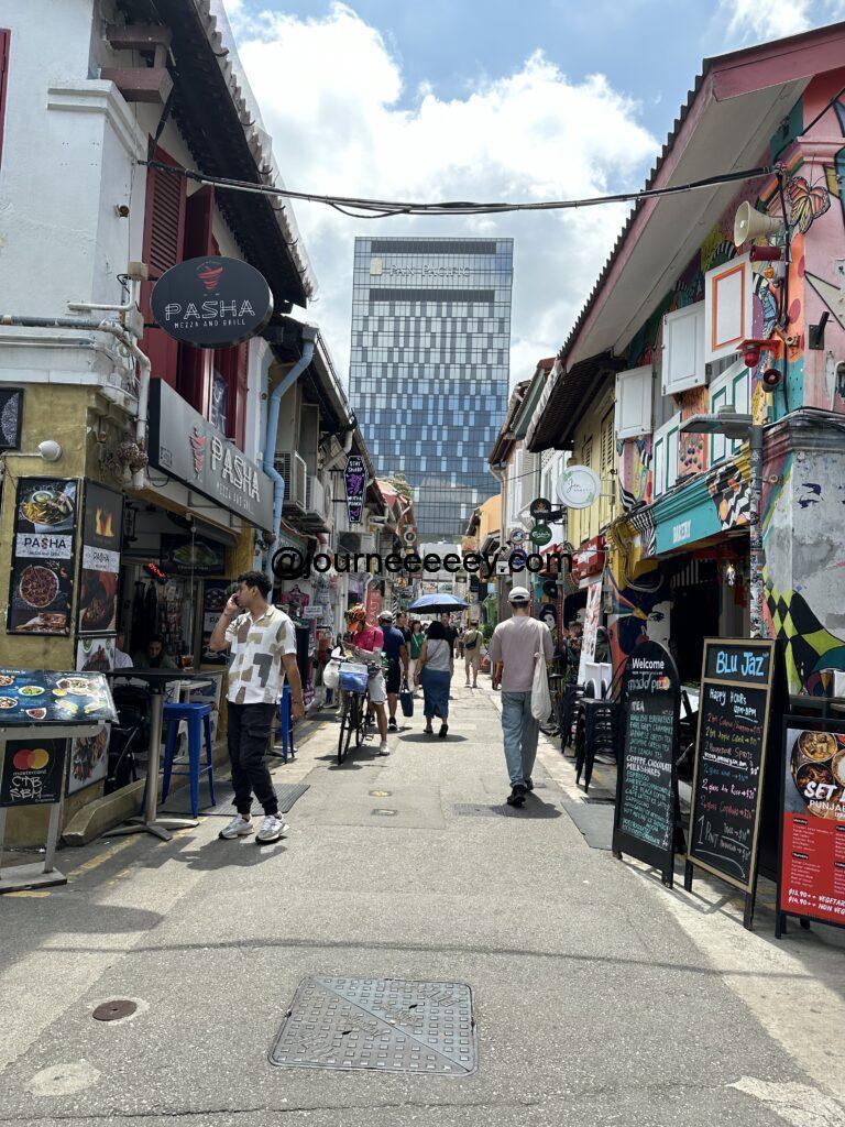 ハジ・レーンではおしゃれな雑貨店やカフェがたくさん並び、建物壁面のストリートアートも見どころ。夜にはバーが営業しており、若者でにぎわっていました。