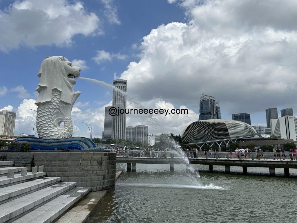 マリーナベイ・サンズとマーライオンのコラボ。シンガポールの夜景は本当にうつくしいです。マーライオン周辺は観光客であふれていました。