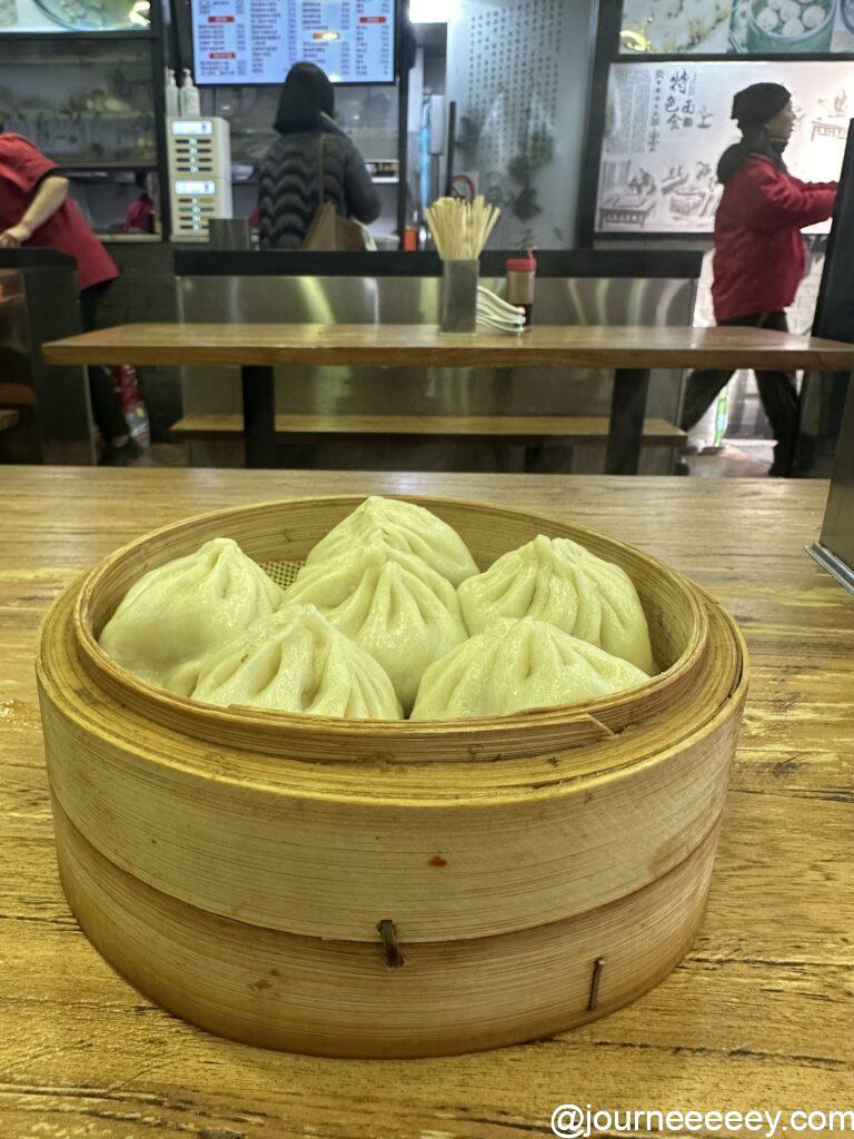 上海鮮肉小籠(35元)を食べました。現地の人たちは、小籠包みたいなものを麺のスープの中に入れて食べていておいしそうでした。