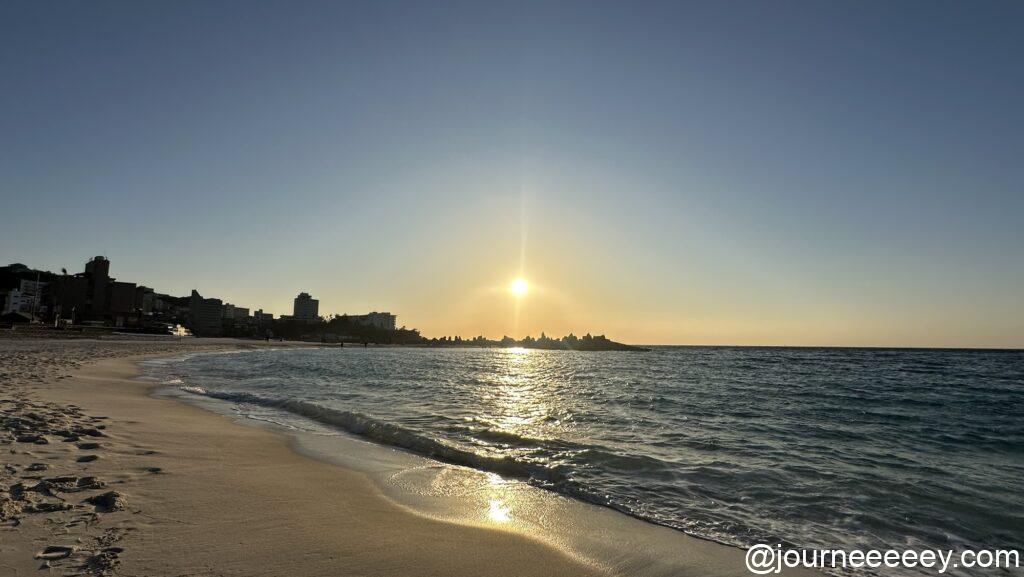 お風呂を出たら夕日がいい感じだったので、白良浜ビーチへ引きかえし、夕日を見に行くことに。やはり夕日と海のコラボは最高です。