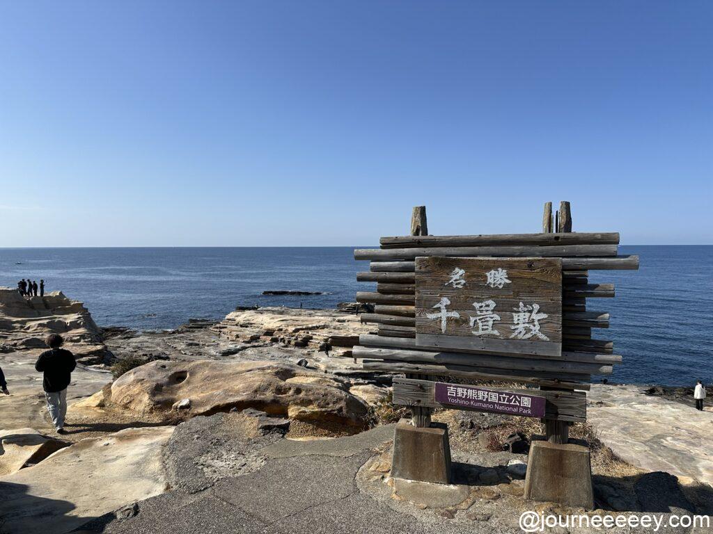 チェックアウト後、白浜の有名スポット「千畳敷」(せんじょうじき)へ。広がる岩場に打ち寄せる冬の波が迫力満点!斜面が急な岩場を歩くのはなんだかワクワクします。