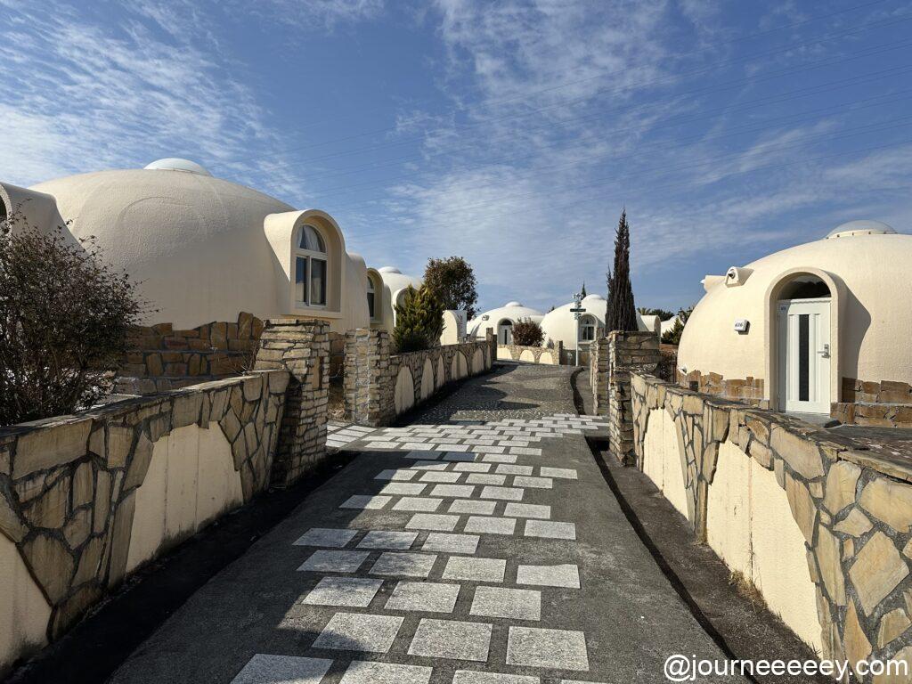 「とれとれ市場」の近くにある「とれとれヴィレッジ」と「パンダヴィレッジ」を見学。まるで絵本の世界のような丸いドーム型の宿泊施設が並び、見ているだけでたのしい。パンダ型のドームもかわいいです。