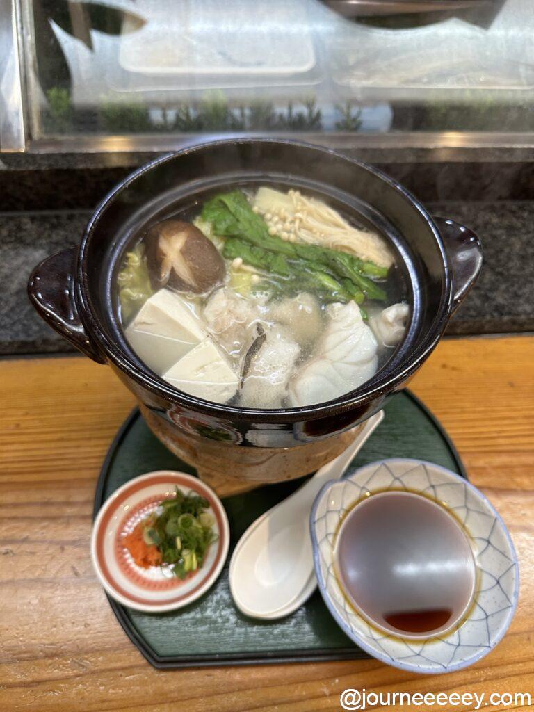冬の白浜といえばクエ鍋!クエはふっくら、プリッとしてコラーゲンがたっぷり。お店の大将にクエはよくダシが出るから鍋の汁がおいしいよ、少しつゆをすくってから鍋の汁をぐるりとスプーンに入れ込んで飲むといいよと教えてもらったのでさっそく実践。クエの脂と旨みが詰まっていて何倍でもスプーンを口に運んでしまいます。お店の人たちも温かくやさしい人たちで最高の旅の締めくくりとなりました。