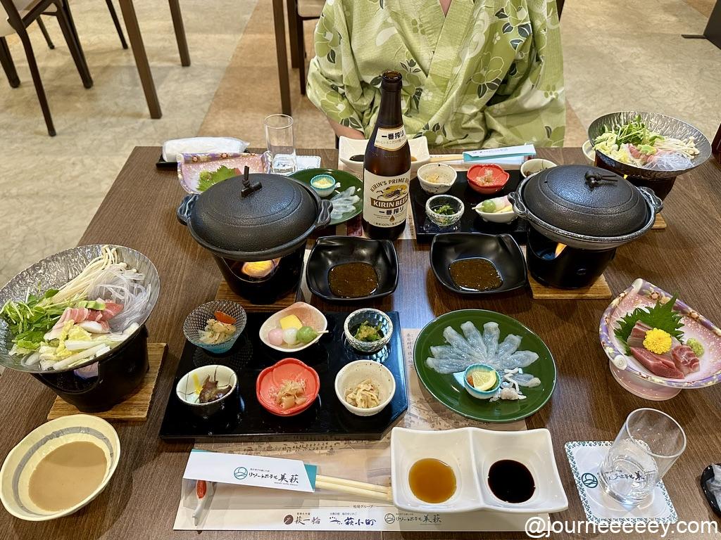 本日の宿はリゾートホテル美萩。2つある温泉と山口グルメをしっかりと堪能しました。