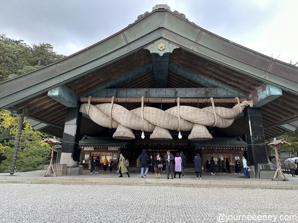 - 神楽殿の大しめ縄や、稲佐の浜など、見どころも多い