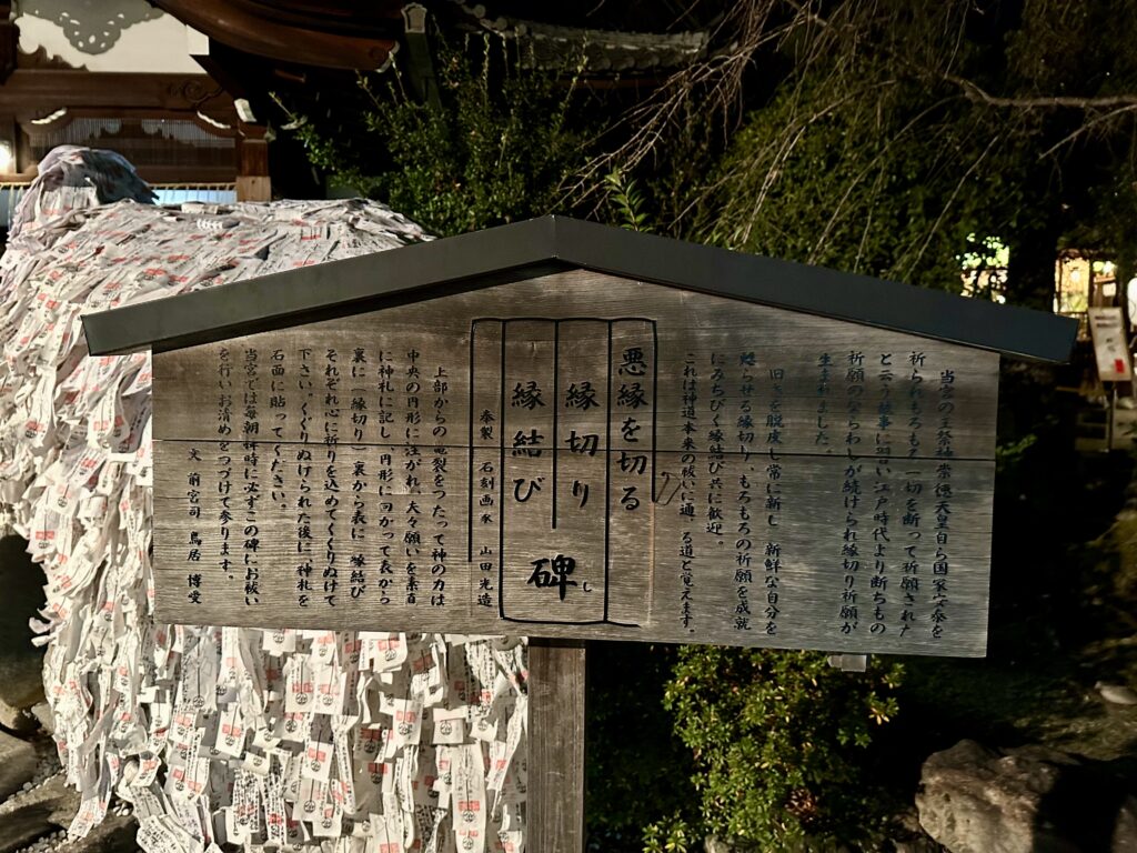 安井金比羅宮は、「悪縁を切り、良縁を結ぶ」と全国的に有名な縁結び神社です。恋愛だけでなく、人間関係や仕事の縁も整理できるスポットとして人気があります。ちょっと調べてみるとわかるのですが、やばそうなウワサがありちょっと怖かったのも正直なところ。周辺には祇園や清水寺などの名所もあり、観光ついでに訪れることができます。