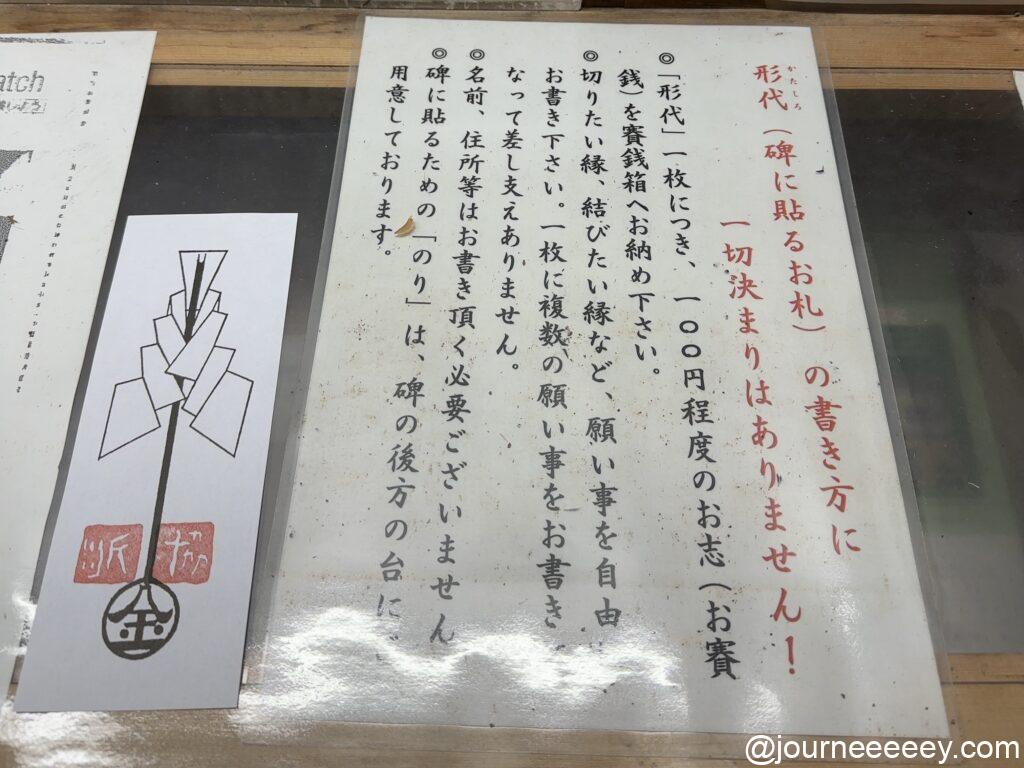 - 願い事を書いた形代を持ち、碑の穴を 表から裏へくぐる(悪縁を断つ)
