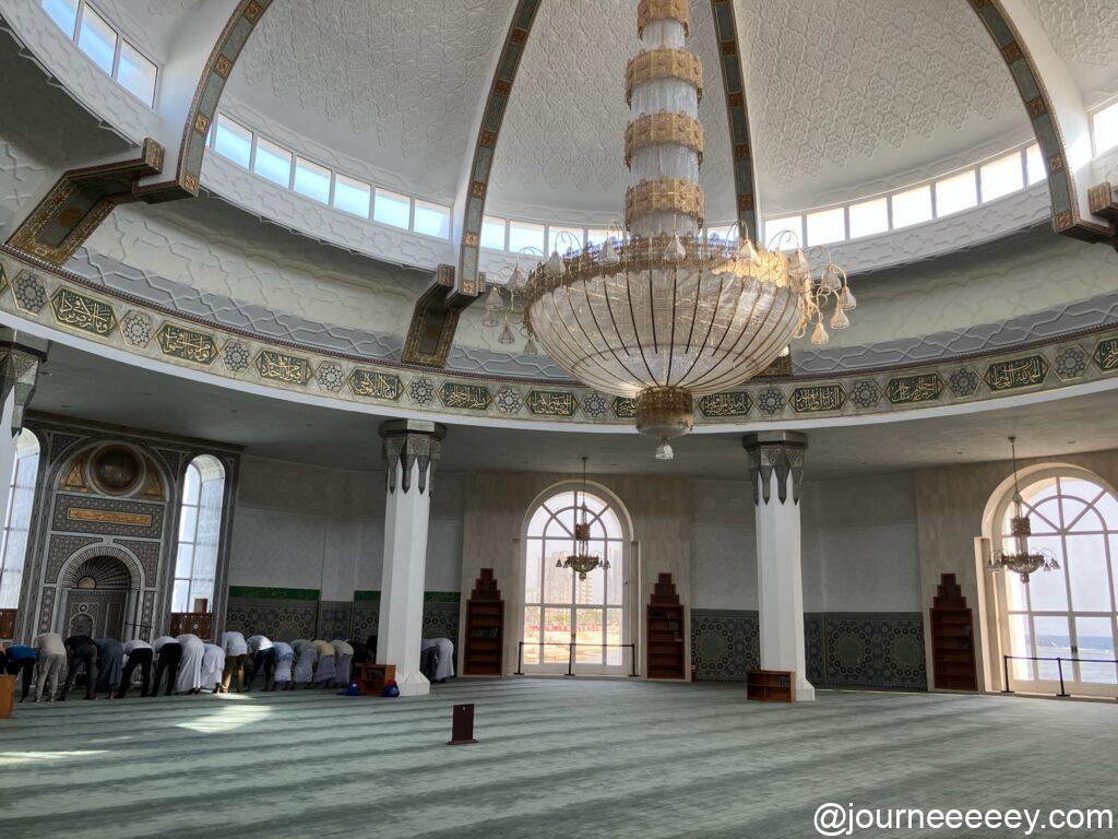 紅海に浮かぶように建つモスク。女性はメインの1階部分の中にはいれず、2階?階段で上がったところの祈祷室にてお祈りをしていました。写真は友だちに撮ってきてもらったものです。