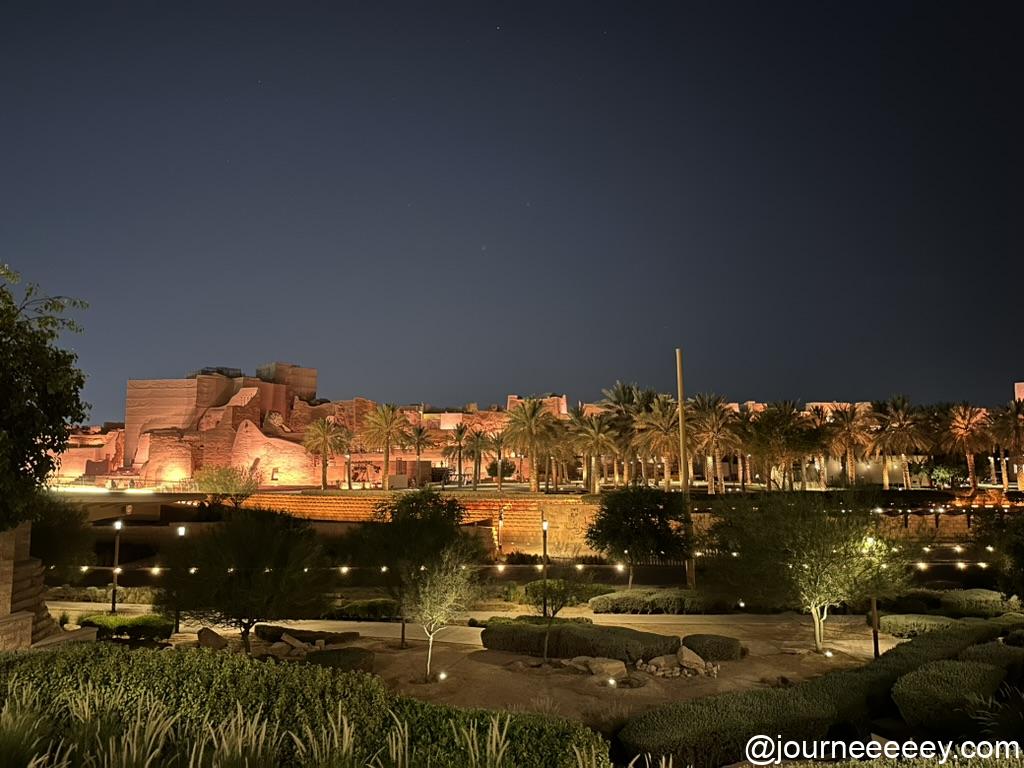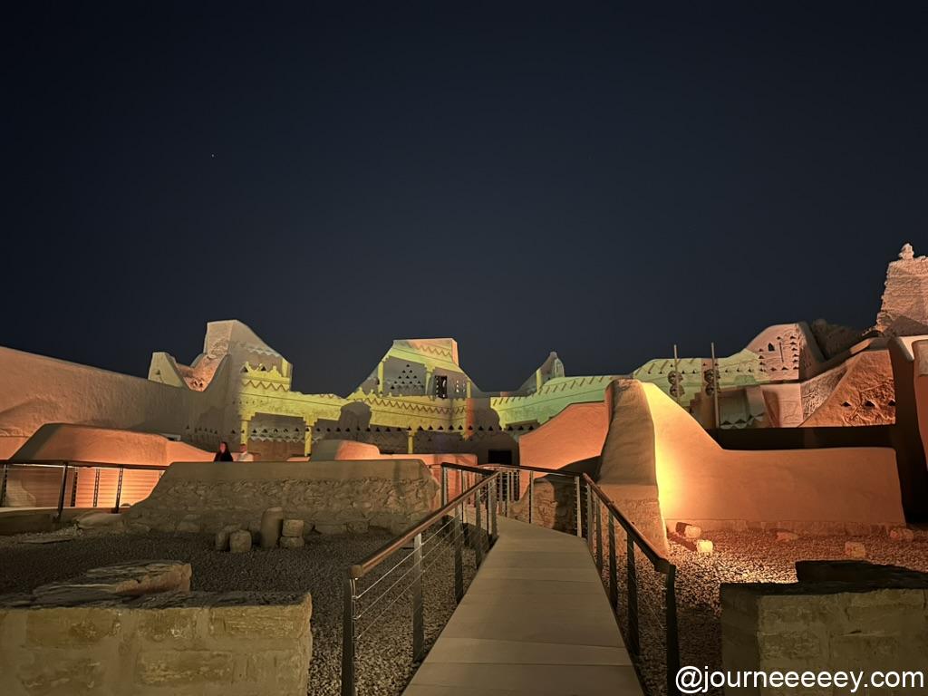 世界遺産にも登録されている歴史的エリア。ディルイーヤは入場にチケットが必要です。チケット購入ブースはなく、公式サイトから購入しました。夜はライトアップされ幻想的な雰囲気でした。