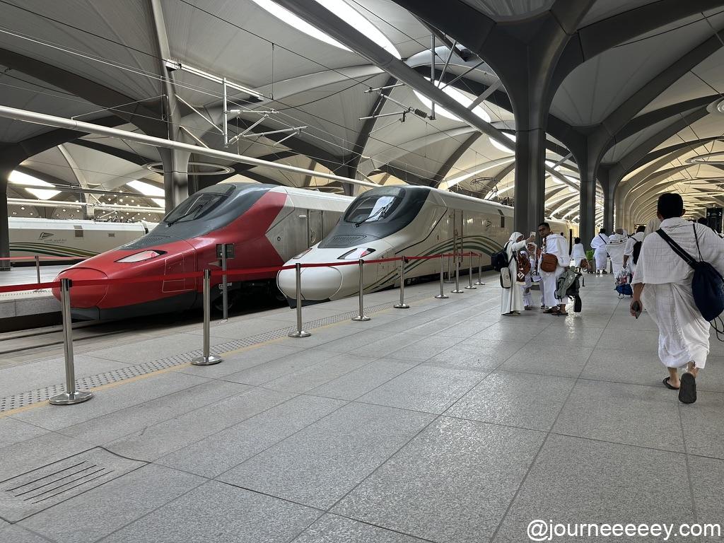 観光後はメディナ駅へ。預けていた荷物を受け取り、そのままメディナからジェッダへ最新の高速鉄道で約2時間の移動。スマホの充電もできて快適な車内でした。