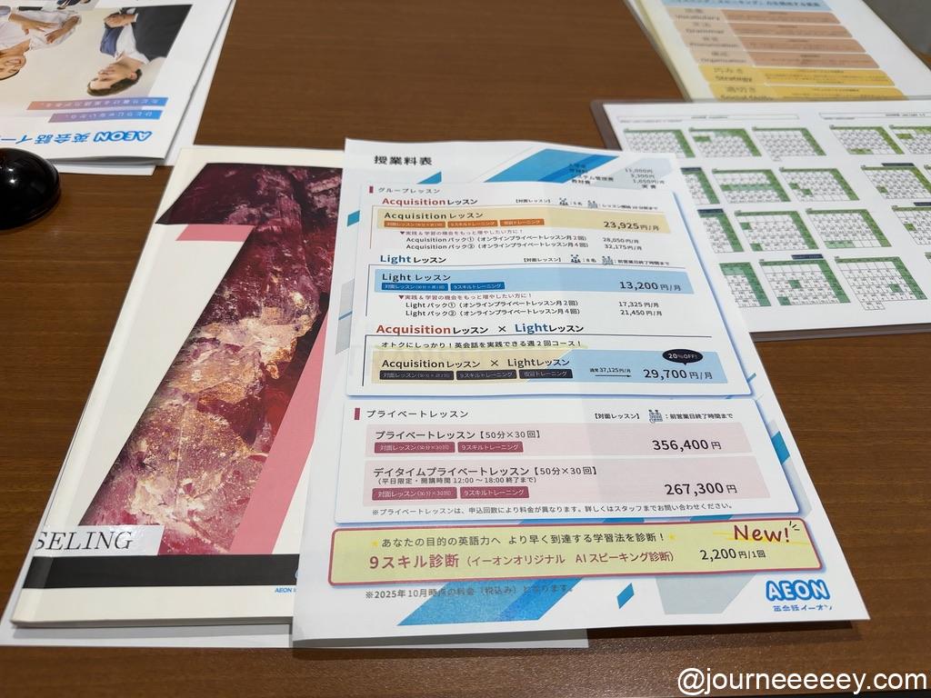 体験レッスンを担当したネイティブ講師による英語力の評価がカウンセラーと共有されるらしく、その評価に基づき弱みを克服するための学習コースやスケジュール・料金などを具体的に説明されます。自分の弱点や伸ばしたいスキルに合わせたプランを提案してくれました。