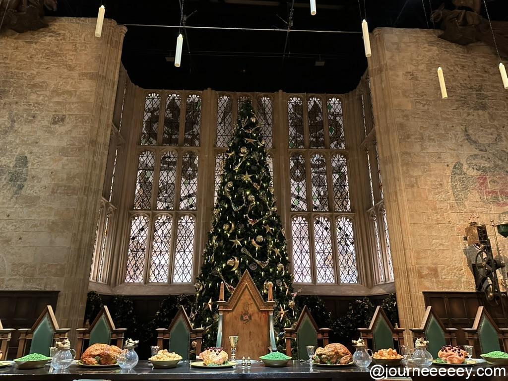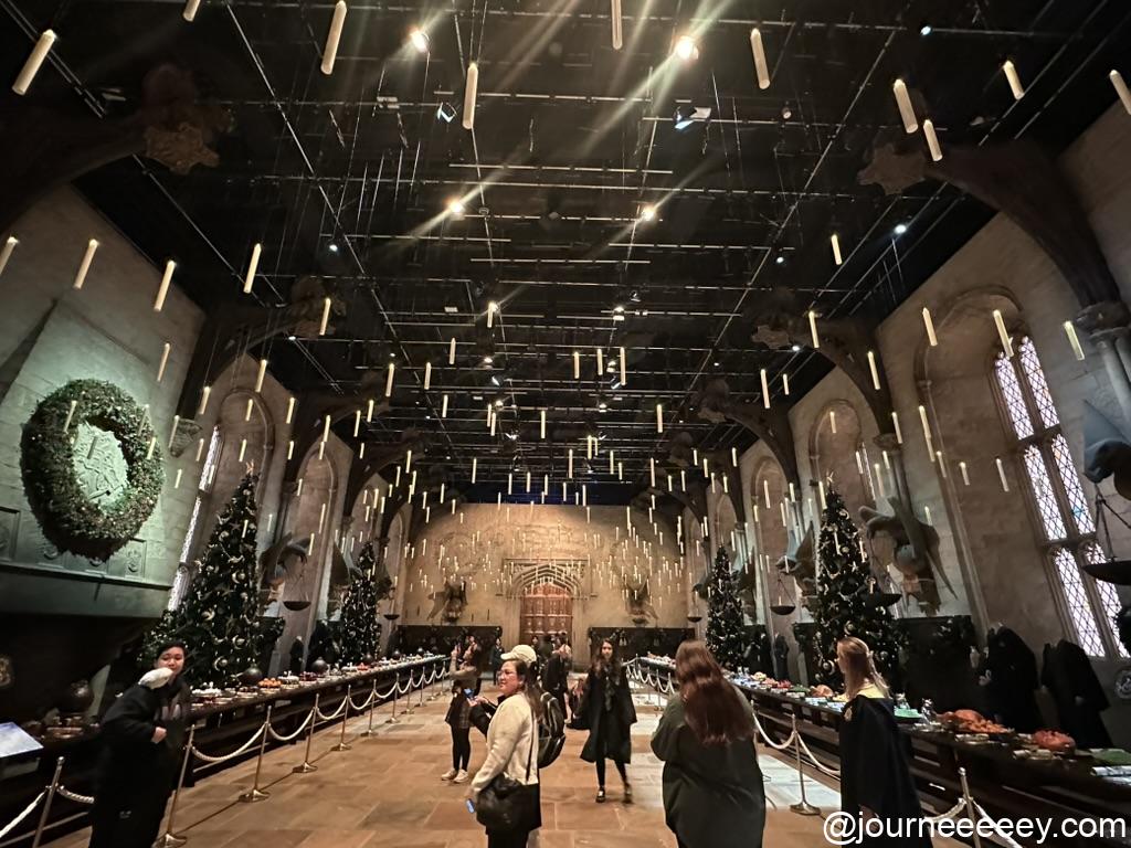 また、ちょうど冬限定の企画「ホグワーツ・イン・ザ・スノー」がやっていたのですが、ハリー・ポッターのあの冬の景色のうつくしさが再現されていてほんとうにすばらしかったです。特にツアー最初、大広間の扉を開けた瞬間、目の前にたくさんのキャンドルが広がっていて感動しました。
