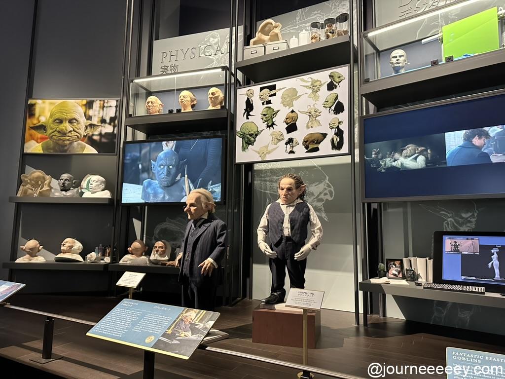 特殊効果、VFX、メイキング資料など映画ってこう作るんだ、あれだけの魔法の世界を表現するにはここまで細部にこだわっているんだ、とおどろかされる展示が多いエリアがところどころあります。小道具ひとつひとつの秘密、魔法動物の造形、CGと実際のセットの組み合わせなど、撮影の裏側が丁寧に紹介されていて、気づくと展示説明に見入ってしまう。わたしはハリー・ポッターのファンというわけではないのですが、ありとあらゆる要素とそれを生みだした方々に感銘をうけました。