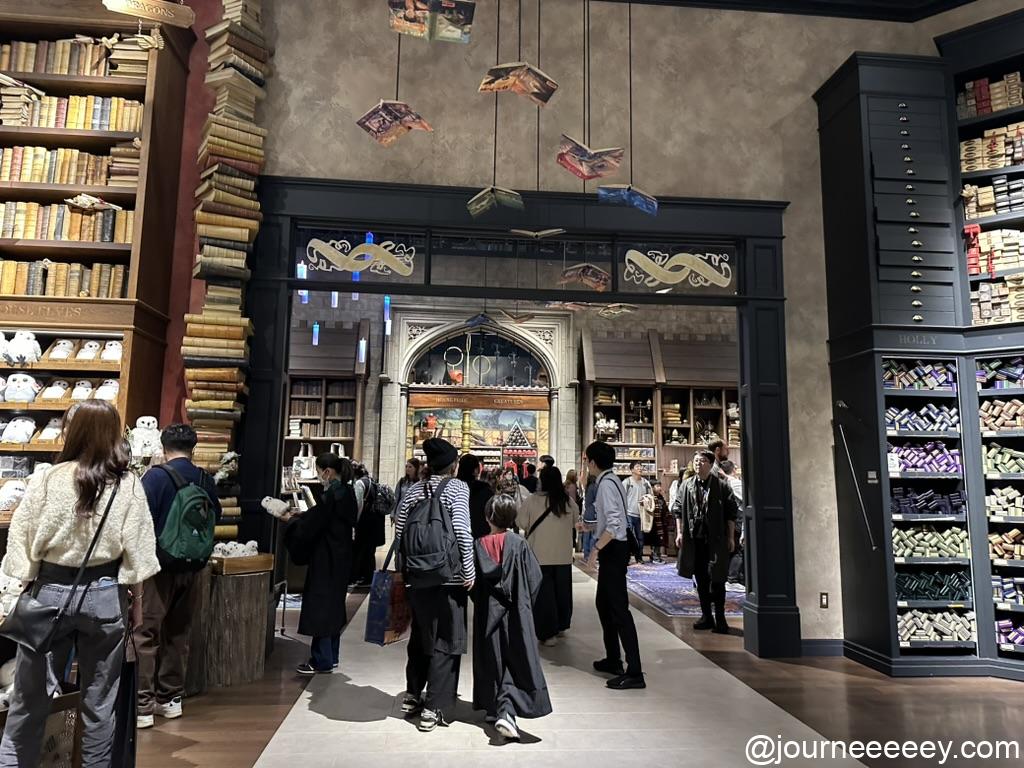 おみやげショップもワクワクがとまらない内装。限定グッズも多く、とにかくかわいい。お値段は高めですが見ているだけでもたのしいです。杖・ローブ・お菓子・文房具・インテリアなど、ジャンルが幅広いです。欲しいものが多すぎて、私は20分以上ショップにいました。おみやげショップは入口のロビーからもいけるのでツアー開始前にローブと杖を先に買っておくのもいいかも。