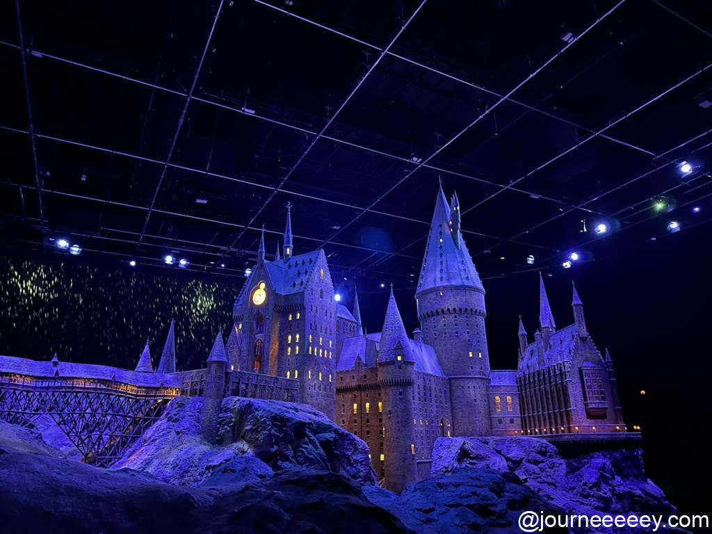 そして最後がホグワーツの模型。雪がふる中、ライトアップされたホグワーツのうつくしい姿にうっとり。感動してなみだを流している人がいておどろきましたが、それくらいロマンチックな演出でした。