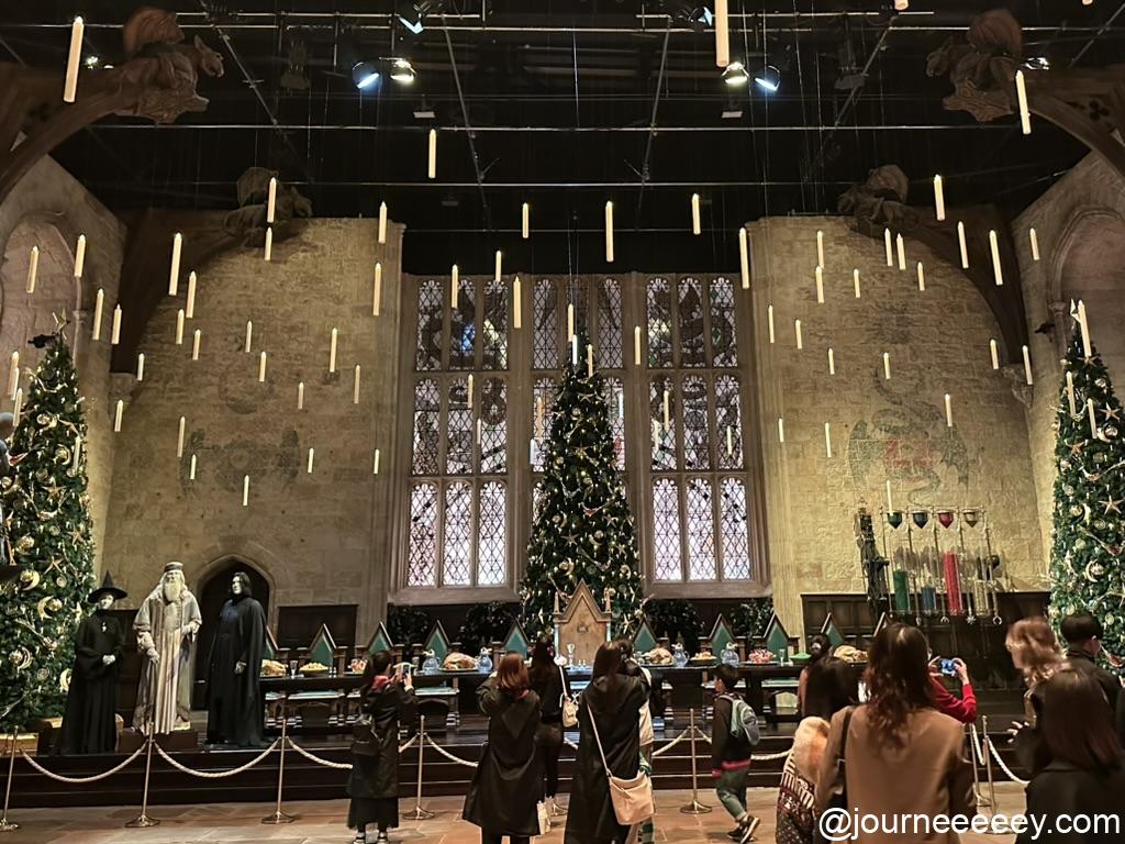 また、ちょうど冬限定の企画「ホグワーツ・イン・ザ・スノー」がやっていたのですが、ハリー・ポッターのあの冬の景色のうつくしさが再現されていてほんとうにすばらしかったです。特にツアー最初、大広間の扉を開けた瞬間、目の前にたくさんのキャンドルが広がっていて感動しました。