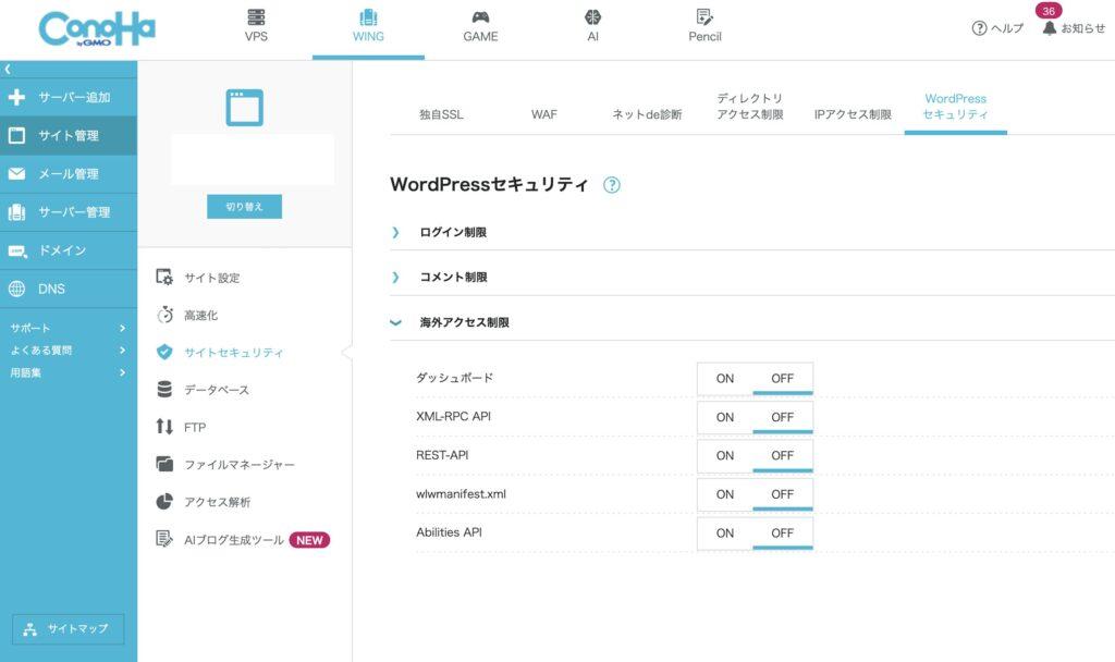 🔹 ConoHa WINGのセキュリティ設定(海外アクセス制限)