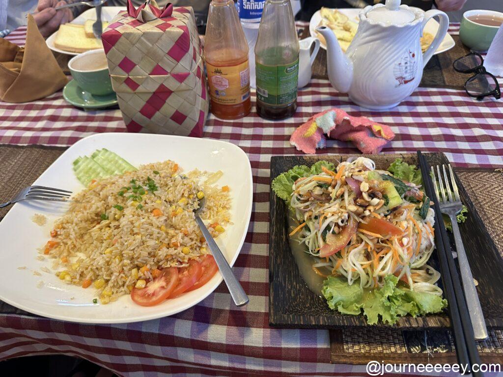 お腹ペコペコだったので朝からガッツリと、フライドライスとパパイヤサラダをいただきました。