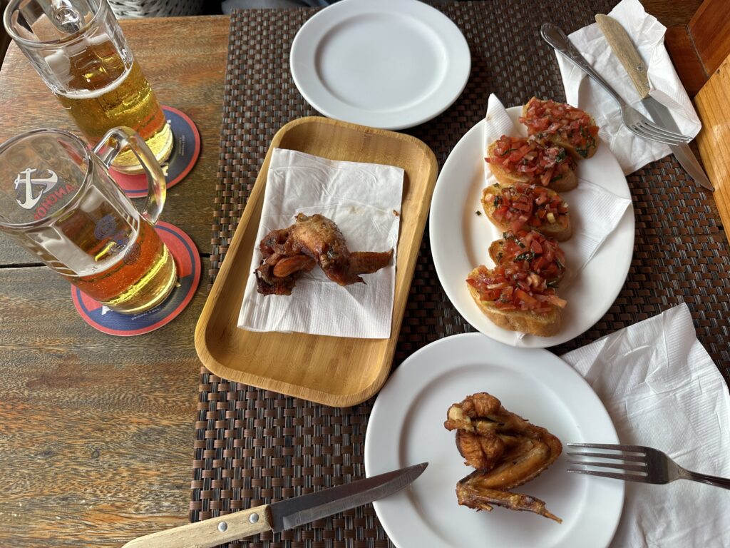 私はここでビールやチキンなどを注文。 オープンエアのテラス席でビールを飲む時間が最高すぎました。